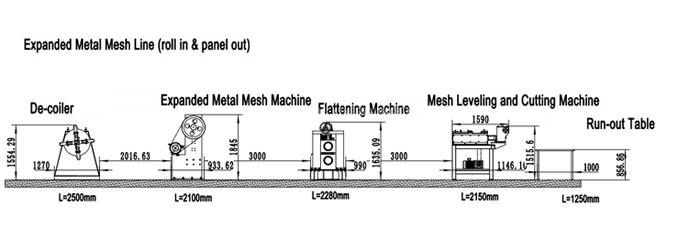 The expanded metal mesh machine is composed of main machine frame, driving system, crankshaft, upper blade frame(movable frame), down blade frame, feeding device, material moving device, lubrication system and electric control part.