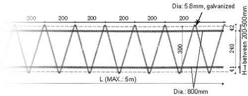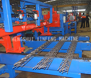 The truss girder welding machine contains Line wire straightening unit,Line wire accumulator,inclined beading bending moulding structure,Welding system,Truss bridge feeding system,Truss bridge cutting,material receiving system.