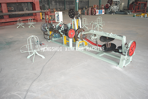 XF-A type barbed steel wire is connected by circle wire and received wire and has four silk plates. All parts work coordinately, move steady, operate rumble and reliable. It is the only equipment of producing barbed steel wire at home at present.