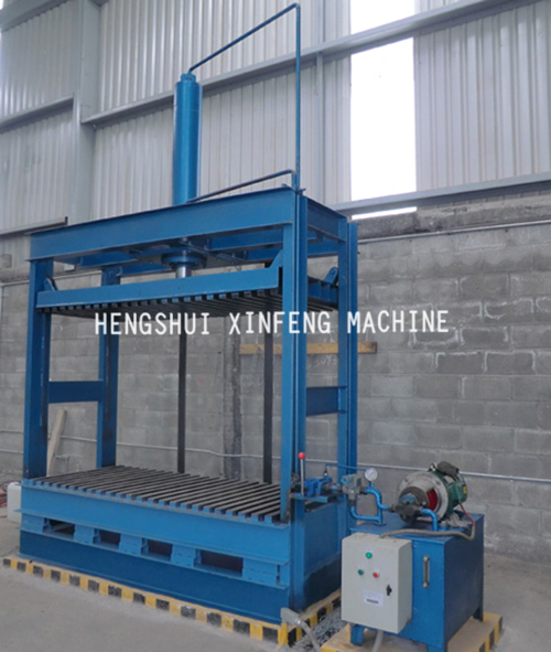 When the machine work, oil pump unit provide the pressure oil via safety valve limit the pressure and enter manual reversing valve, when manual reversing valve work on the left, pressure oil enter on the oil cylinder via piston, piston rod pull pressure plate run downwards, the down oil of the oil cylinder stream back to tank via reversing valve. When Manual reversing valve work in the middle, the up and down oil of oil cylinder will be closed by reversing valve, pressure plate can keep pressure and stay on anywhere, oil cylinder discharge loads via reversing valve, when reversing valve work on the right, pressure oil enter down part of oil cylinder pull pressure plate run upwards, the up part oil of the oil cylinder flow back to tank via reversing valve.
