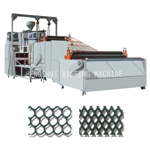 The machine is special equipment to produce plastic hard flat net with PE material and many kinds of nets of different structure and type by changing die and sizing device. All kinds of plastic hard flat nets produced by the machine are widely used in interlayer of bed, dyke coast resistance, strengthening roadbed, plant bracket, mine roof, breed aquatics, and so on. So it is also called versatile net.